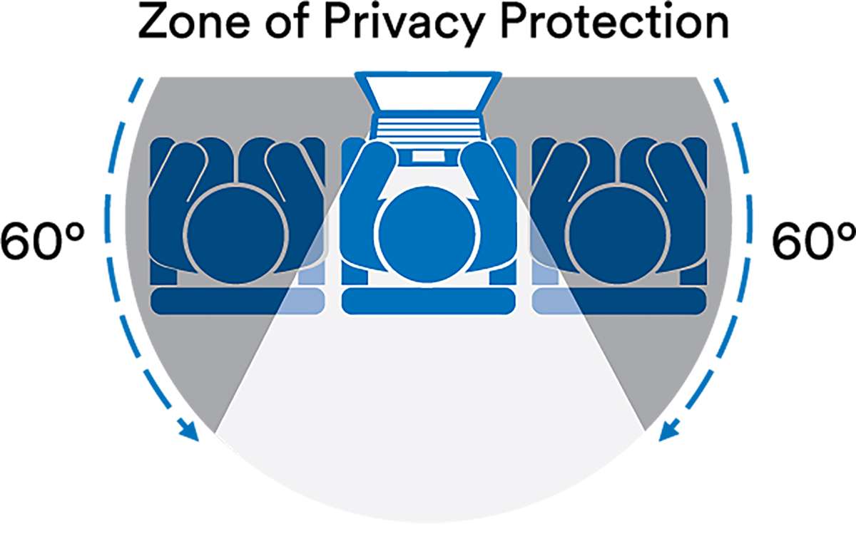 zaawansowany filtr prywatyzujący 3M™ Bright Screen zapewniający skuteczną ochronę poprzez zaciemnienie ekranu i uniemożliwienie podglądania jego zawartości z boku…