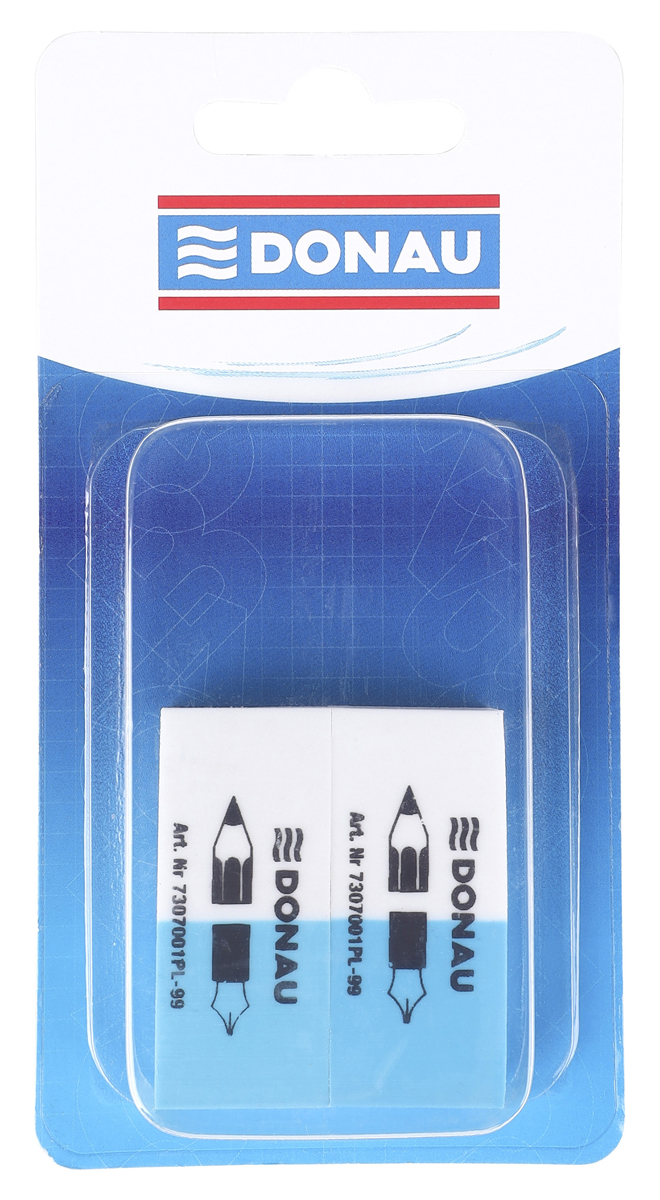 Gumka wielofunkcyjna DONAU, 41x18x11mm, 2 szt., blister, niebiesko-biała, Gumki, Artykuły do pisania i korygowania NOWOŚĆ
