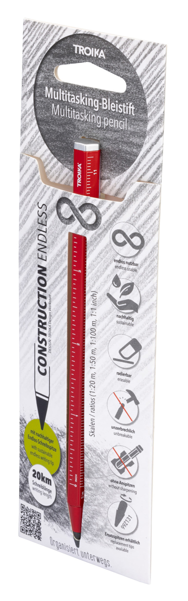 Ołówek wielozadaniowy TROIKA Construction Endless, czerwony, Ołówki, Artykuły do pisania i korygowania NOWOŚĆ