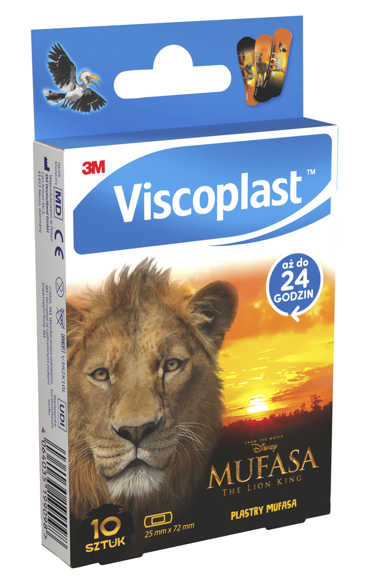 Nazwa produktuPlastry dziecięce VISCOPLAST-3M, Mufasa Król Lew, 72x25 mm, 10 szt., pudełko