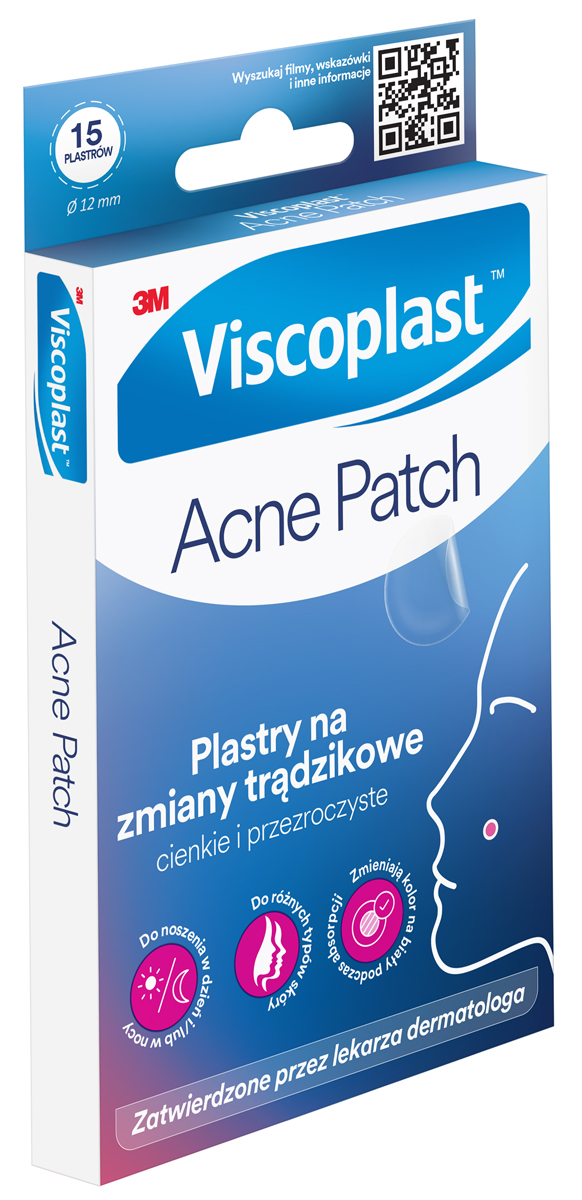 Nazwa produktuPlastry na zmiany trądzikowe VISCOPLAST-3M Acne Patch, Ø 12 mm, 15 szt., pudełko