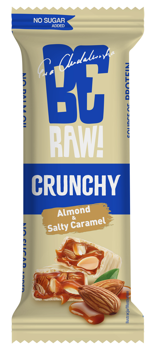 • BeRaw Crunchy Almond & Salty Caramel to pyszny baton proteinowy łączący chrupiące migdały z kremowym, lekko słonym karmelem.