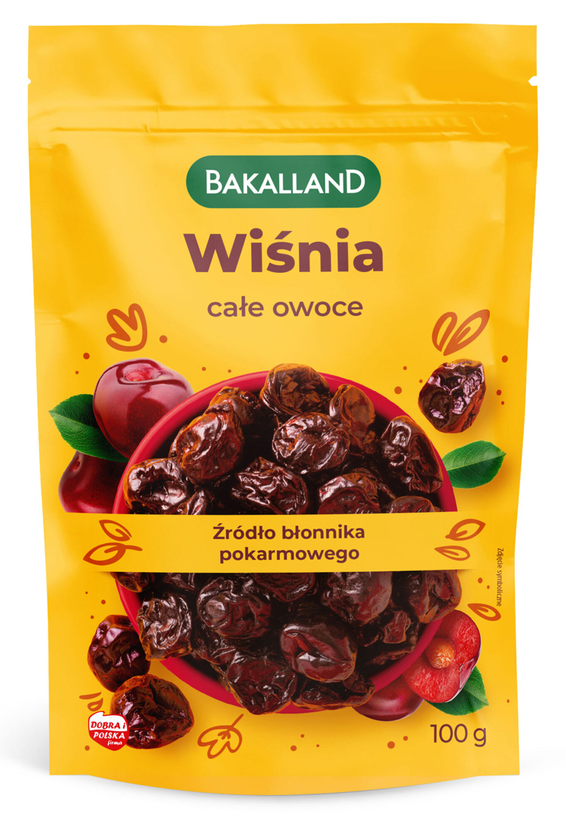 Nazwa produktuWiśnia suszona BAKALLAND, całe owoce, 100g