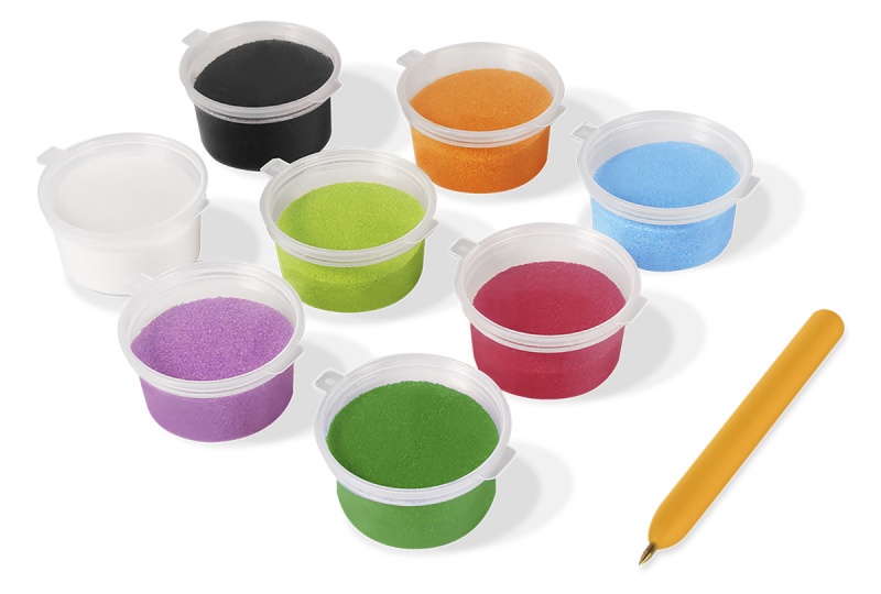 • 8 kolorów piasku (po 40 g) w praktycznych słoiczkach