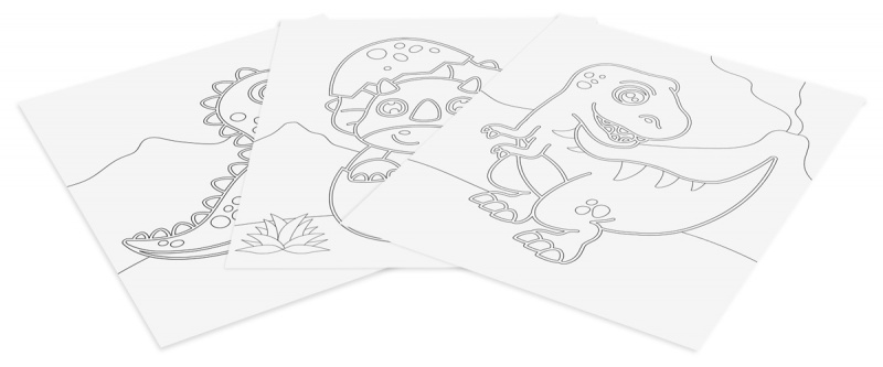 • 3 szablony 20×25 cm z rysunkami dinozaurów
