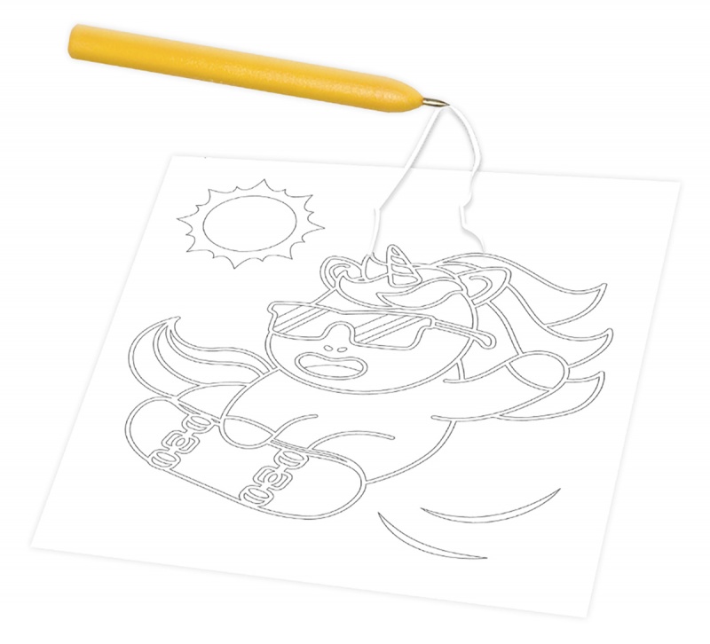 • z pomocą barwnego piasku i zabawnych szablonów dzieci wyczarują swoje własne, kolorowe jednorożce