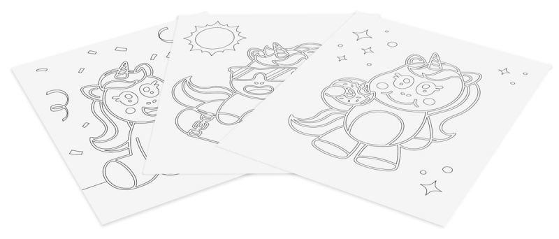 • 3 szablony 20×25 cm z motywami jednorożców