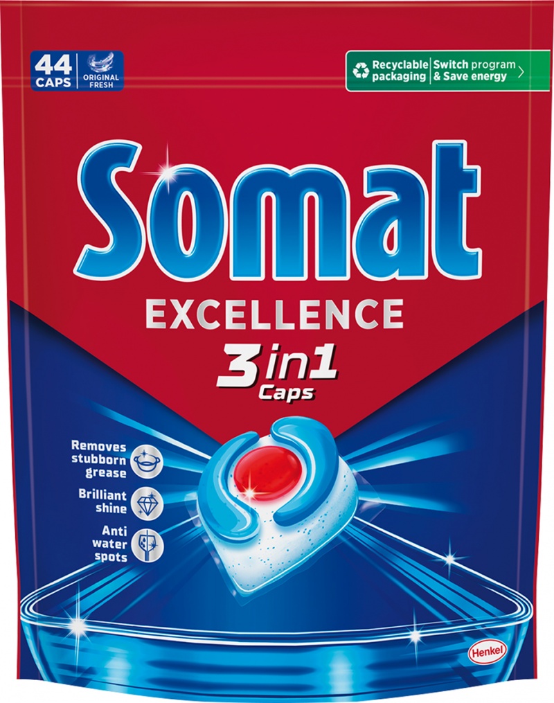 Dishwasher capsules SOMAT Excellence 3in1, 44 pcs., lemon