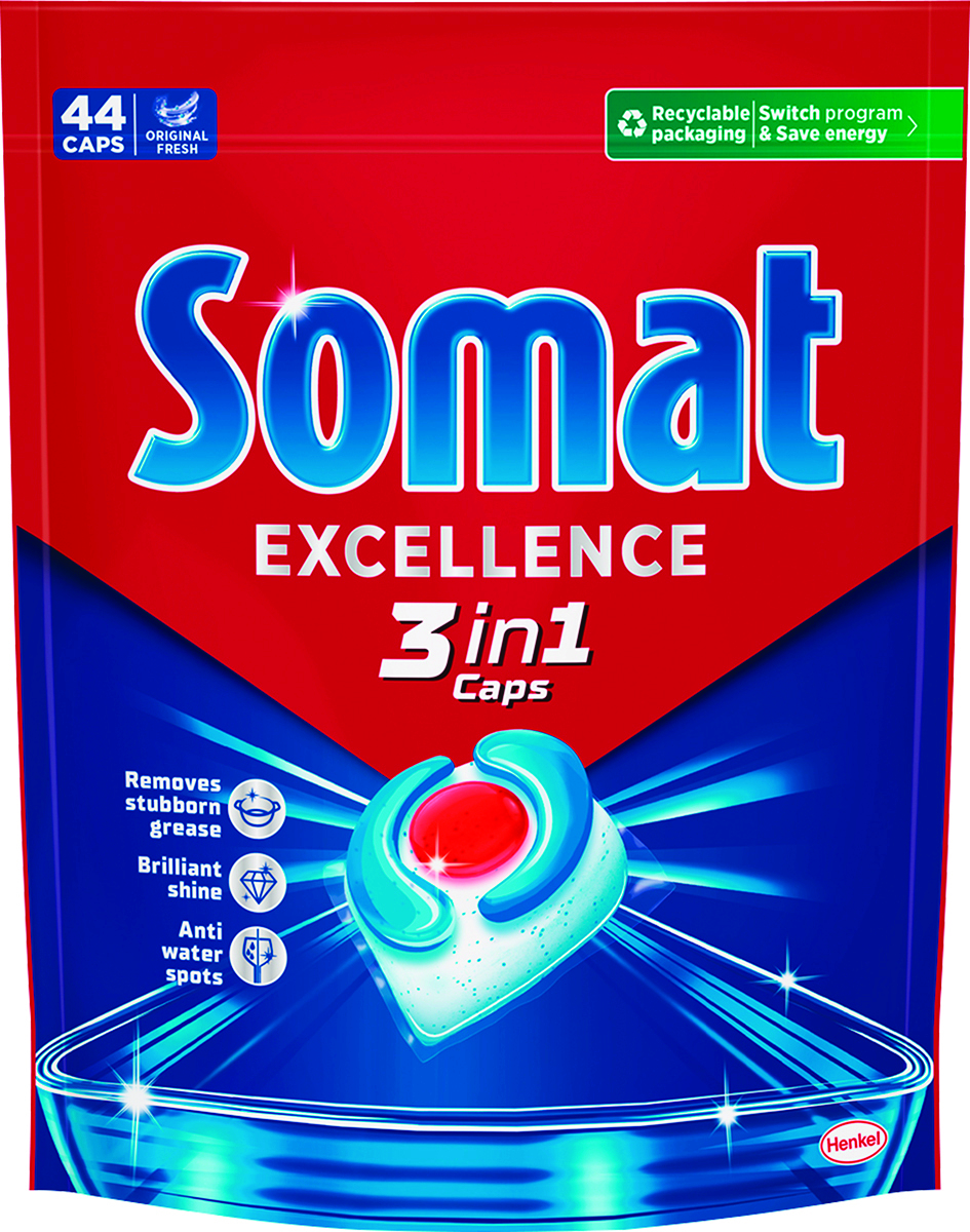 dishwasher capsules Somat Excellence 3in1 designed for effective cleaning of dishes in automatic dishwashers, delivering a high level of cleanliness…