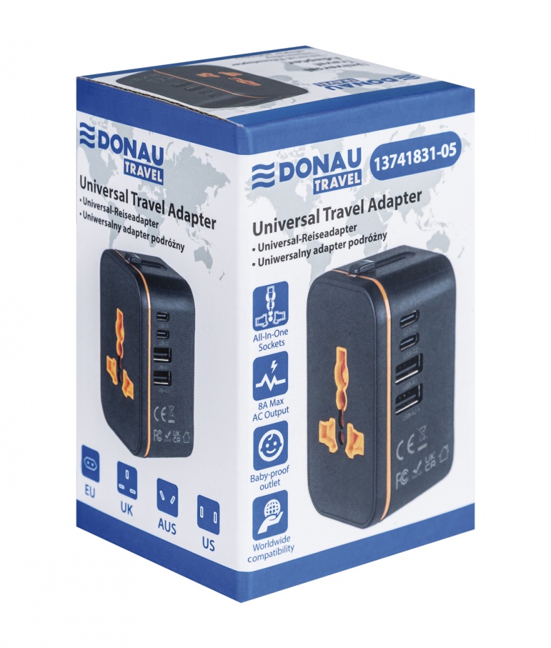 Travel adapter DONAU TRAVEL 205, black