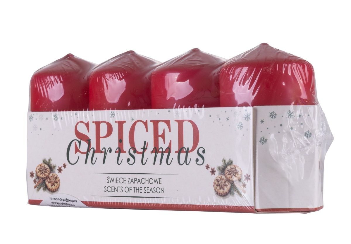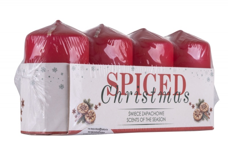 Pillar candle DONAU HOME Spiced Christmas, 40x70mm, set of 4, ginger cookies, red