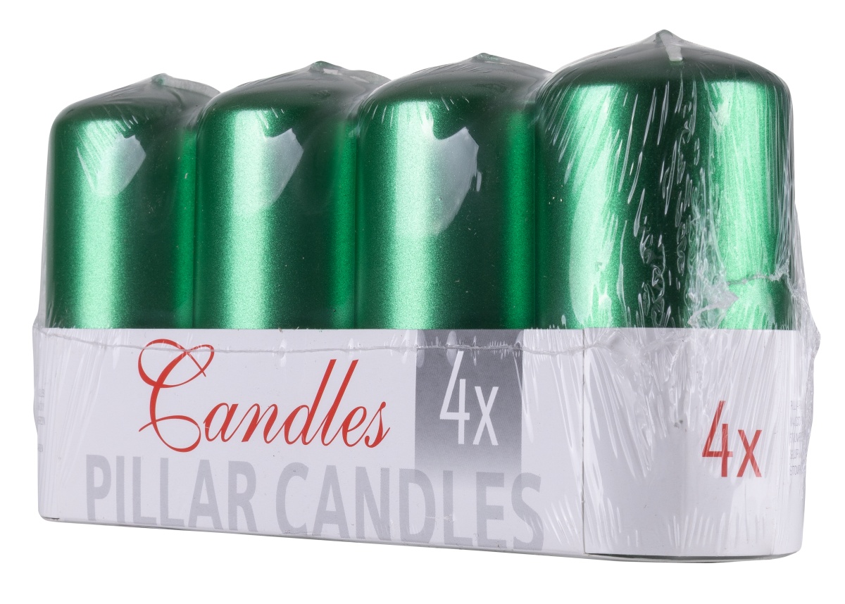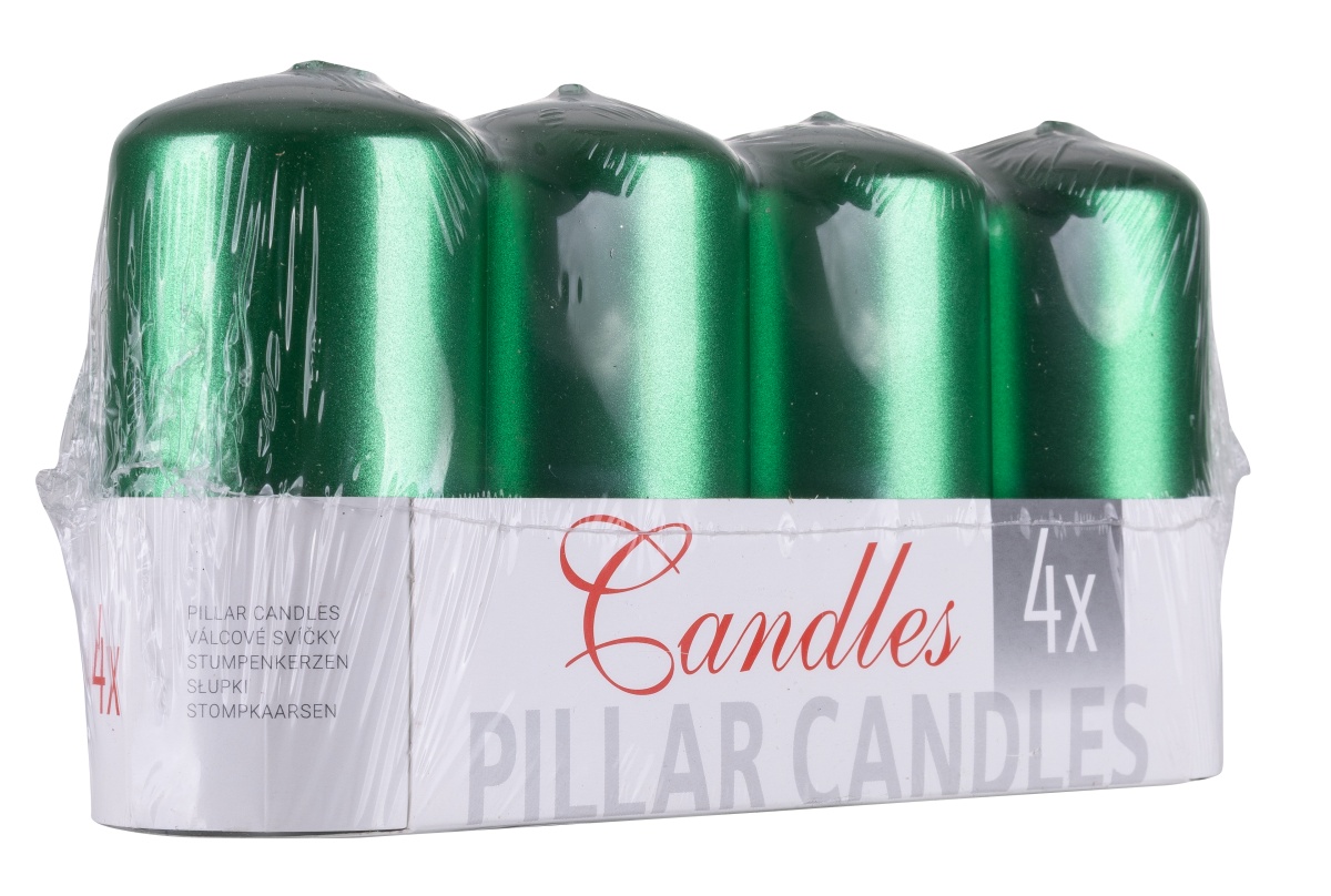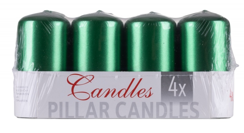 Pillar candle DONAU HOME Standard Gloss, 50x100mm, set of 4, metallic green gloss