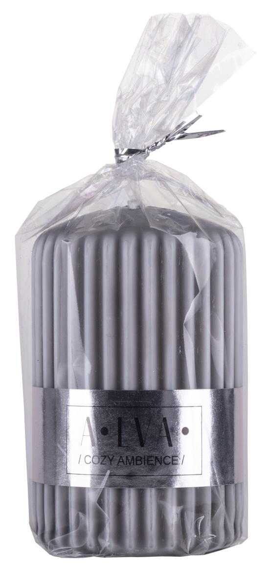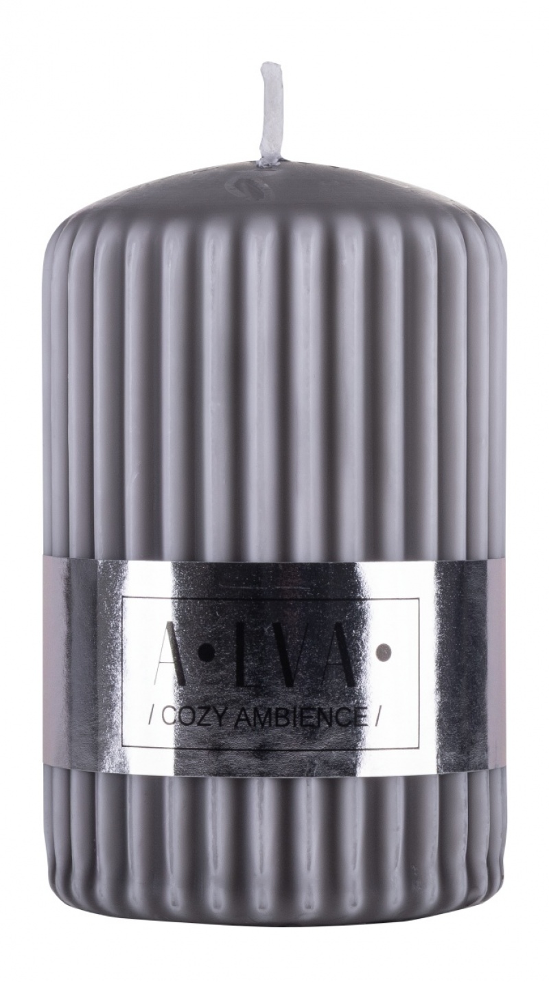 Ribbed pillar candle DONAU HOME Alva, 60x90mm, grey