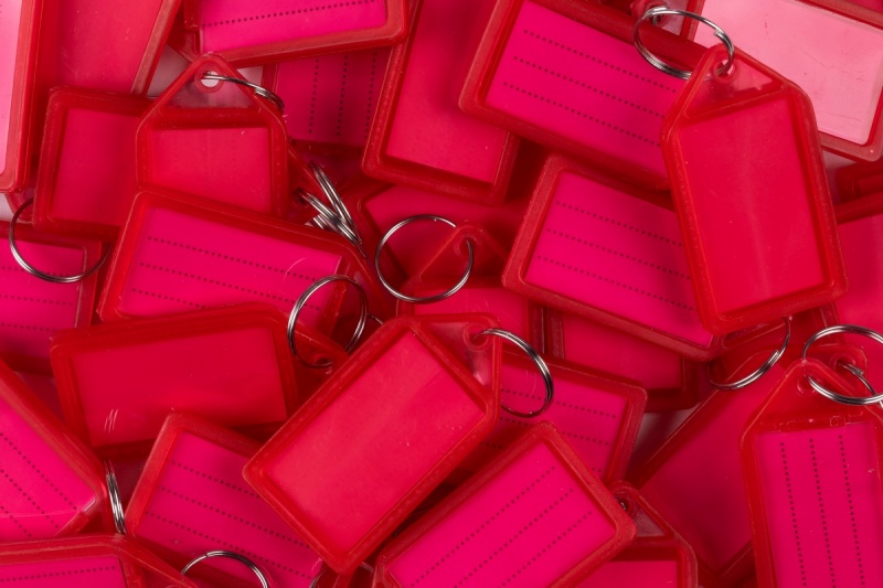 key tags, equipped with a descriptive label and a 15 mm diameter ring connecting the tag to the key…