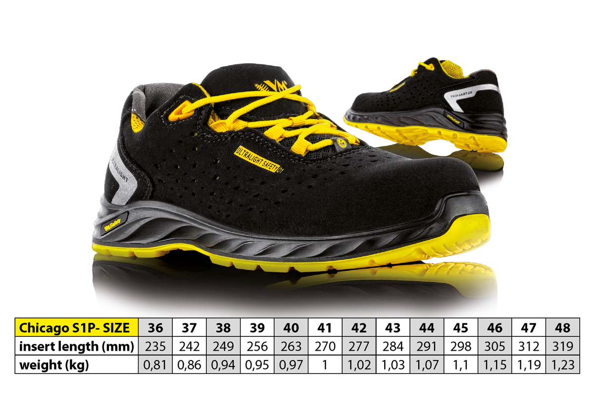 Safety shoes VM FOOTWEAR Chicago 2285-S1PL ESD, size 45, black-yellow