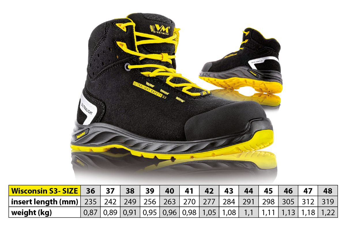 Trzewiki ochronne VM FOOTWEAR Wisconsin 2290-S3L ESD, rozm. 47, czarno-żółte, Obuwie robocze, Ochrona indywidualna NOWOŚĆ
